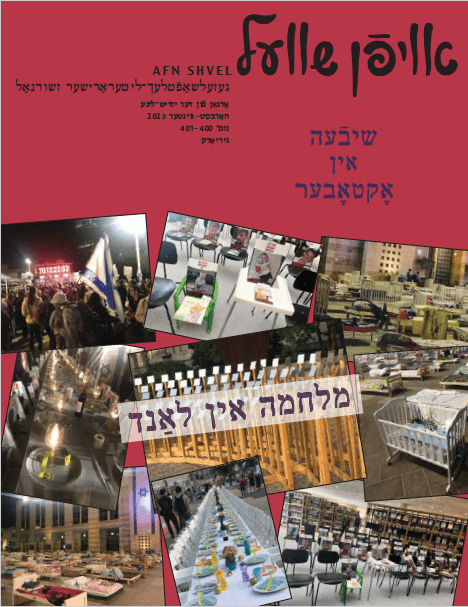 אָפּגעגעבן די טראַגישע אַנטוויקלונגען אין ישׂראל דעם 7טן אָקטאָבער און די מלחמה קעגן כאַמאַס וואָס איז דערפֿון אַרויסגעוואַקסן — מיט פֿאַרשידענע פּערספּעקטיוון און איבערלעבונגען, און גבֿית־עדותן סײַ פֿון געליטענע, סײַ פֿון די וואָס זענען זיי געקומען צו הילף.